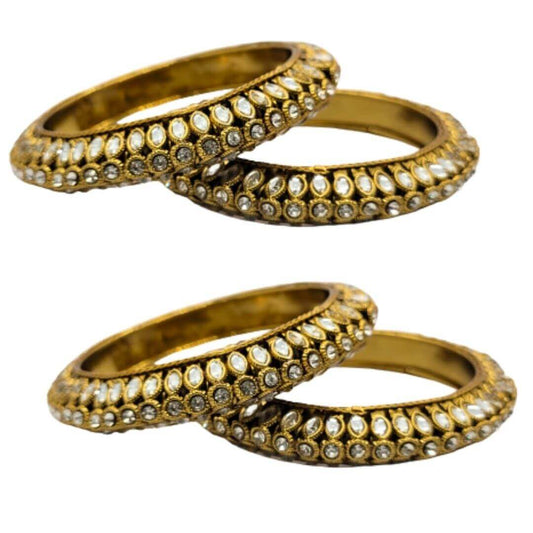 Traditional Oxidised Golden Stone Kada Bangles Set of 2