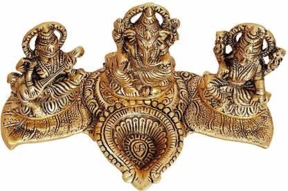 Design Gold Plated Lakshmi Ganesh Saraswati Idol with Deepak Showpiece