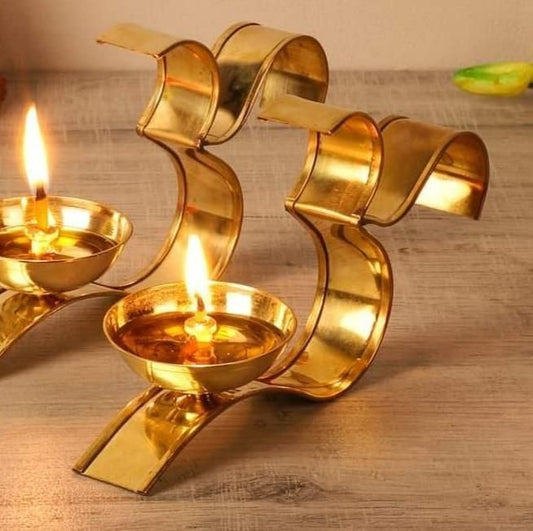 Brass Om Diya Oil Puja Lamp Decorative for Home Office Gifts/ Mandir (Pack of 2)