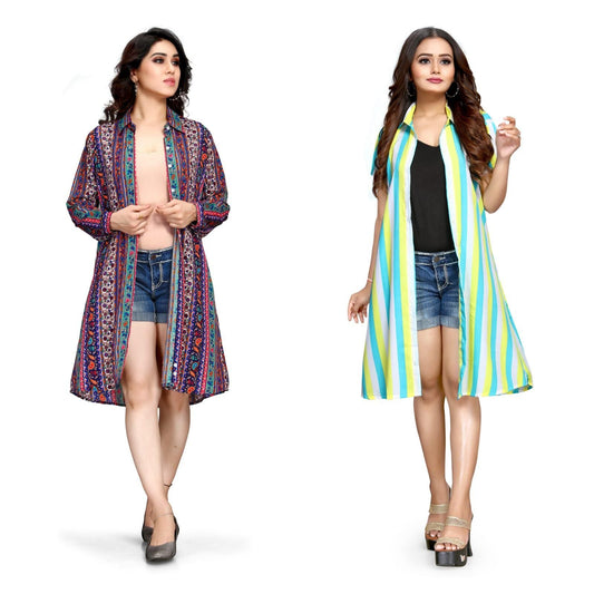 Women's Crepe Printed Shirt Style Short Dress Buy 1 Get 1 Free