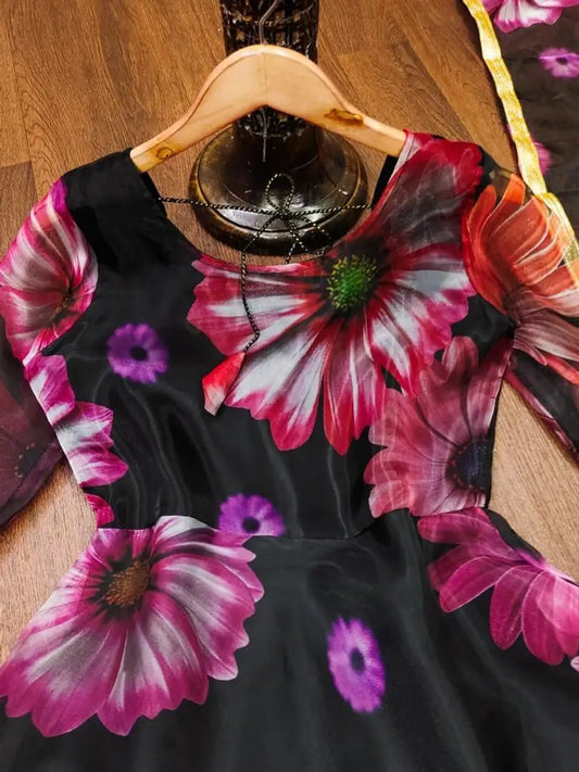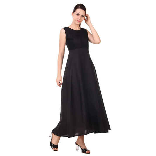 DYRECTDEALS Exclusive Designer Gown Maxi for Girls and Women (Georgette) Black