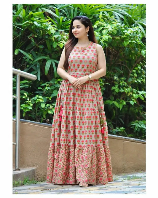 Ethnic women's gowns are elegant and traditional attire that exudes grace and charm. These gowns are often worn on special occasions like weddings, festivals, and cultural celebrations. They come in a variety of styles, fabrics, and designs, each showcasing the rich heritage and cultural diversity of different regions.