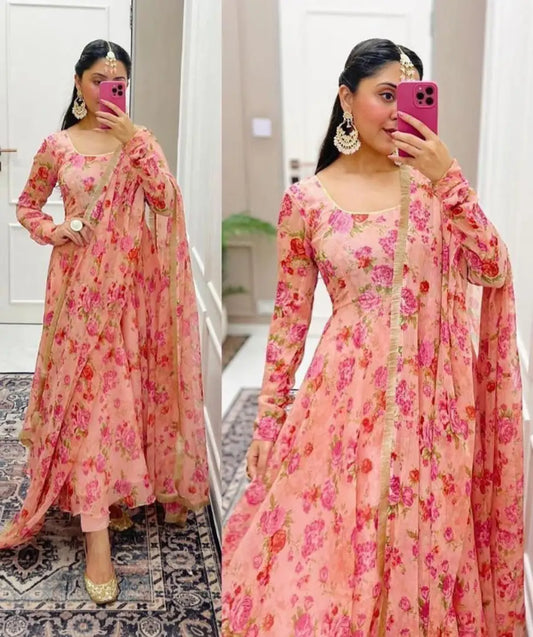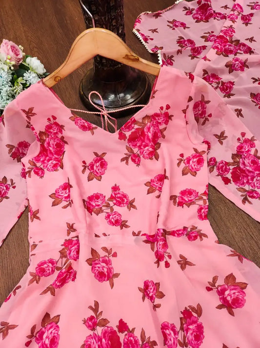 DYRECTDEALS Exclusive Designer Gown Maxi for Girls and Women (Georgette) Pink