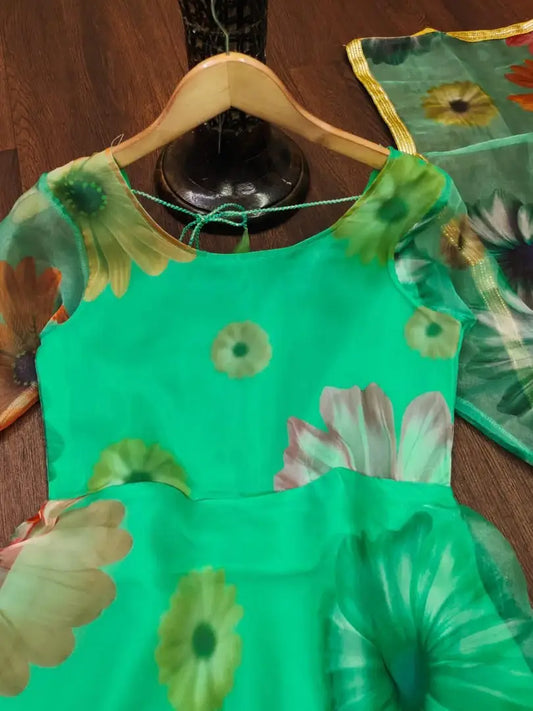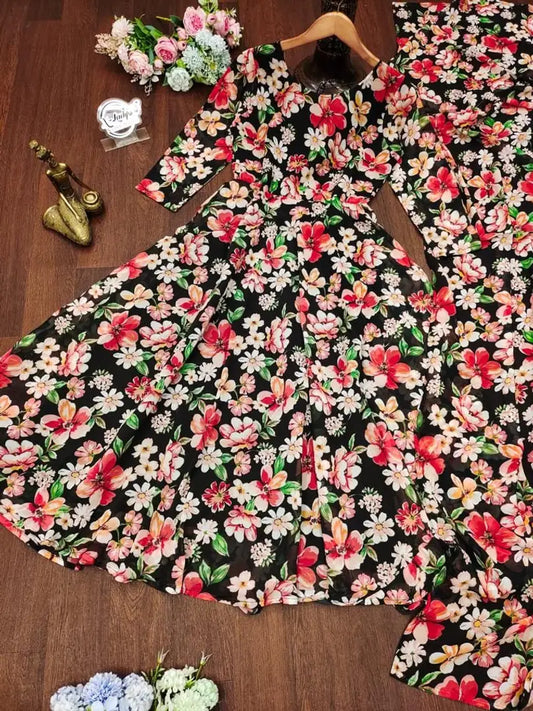 MULTICOLOURED GEORGETTE GOWN WITH DUPATTA