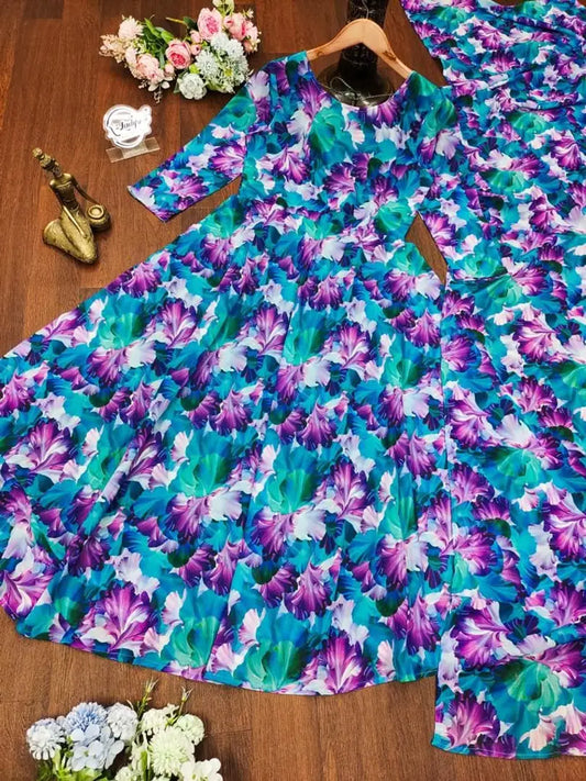 BLUE COLOURED GEORGETTE MAXY GOWN WITH DUPATTA