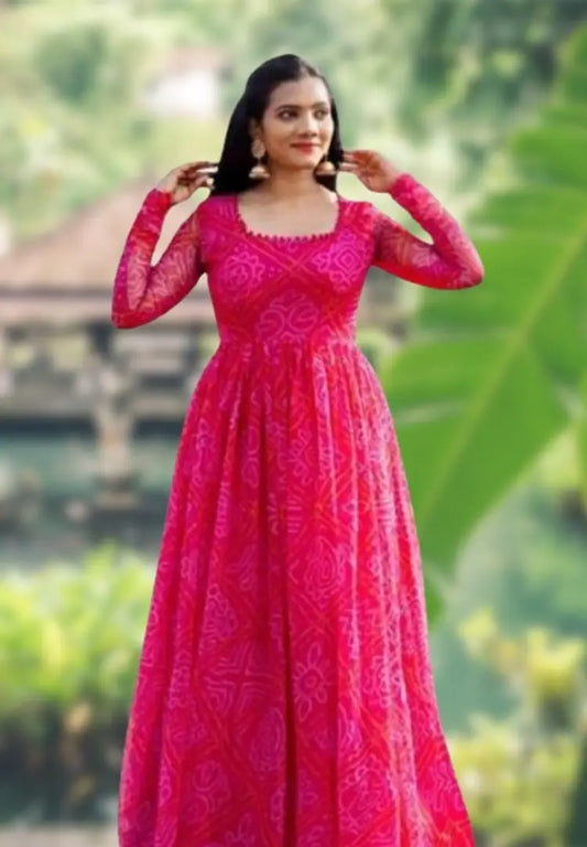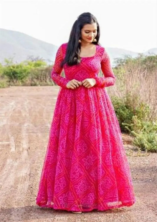 Designer Coloreful Georgette Bandhani Printed Gown For Women