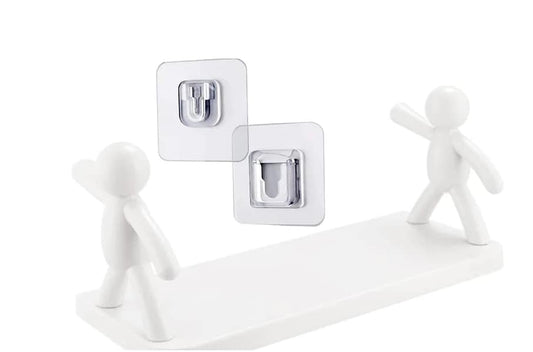 Human Figurine Self Adhesive Cute Floating Shelves with 2 Self Adhesive Stickers, Wall Mounted Organizer, , Wall Shelf, without drill Bathroom & Kitchen Shelf Organizer (White)