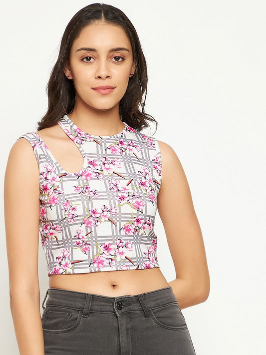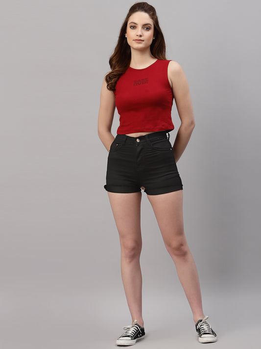 Uptownie Lite Stretchable Polyester Round Neck Sleeveless Cut-Out Crop Top