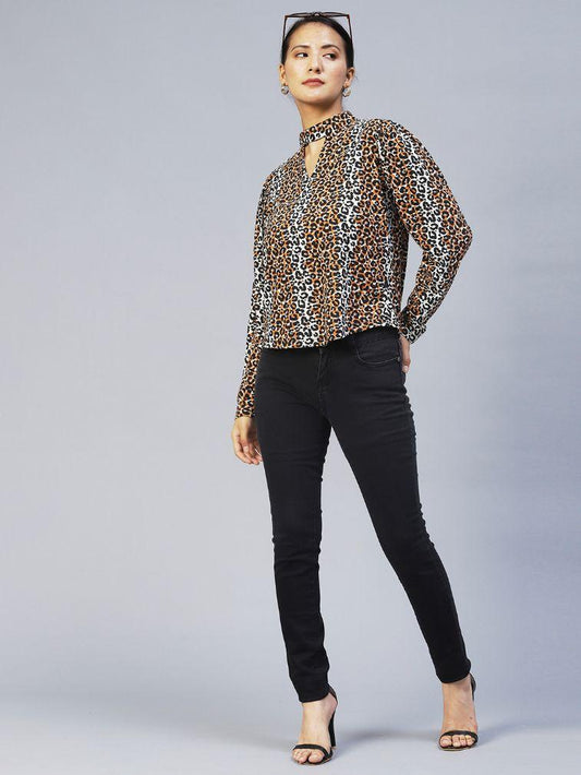 Rigo Women's Cotton Animal Print Chocker Neck Top
