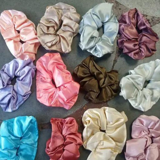 Satin Scrunchies For Women and Girls, Hair Band for Women, Ponytail Holder, Rubber Band, Fluffy Scrunchies, Girls Hair Accessories, Multicolor Pack of 12