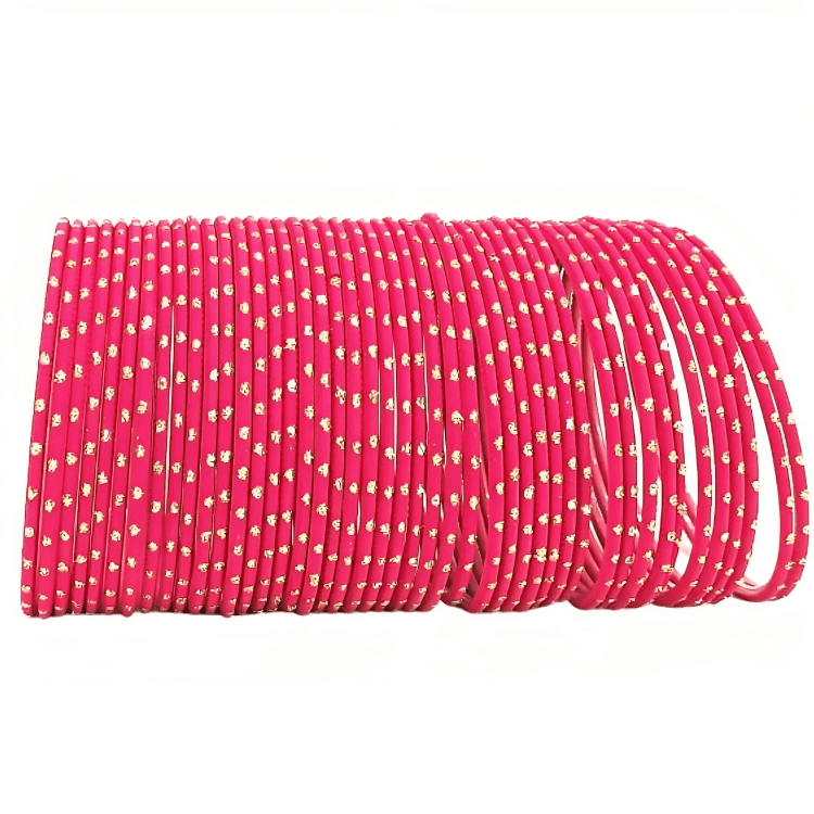 Multicolor Fancy Metal Bangles With Stylish Shimmer Golden Dots Design, Trendy Texture Bangles For Women (Set of 48pcs Bangles)